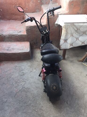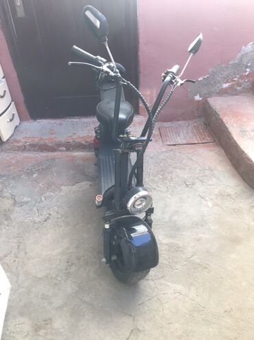 Elektrikli skuter – iri təkərli, güclü ön fara və ikili oturacaqlı model.