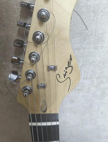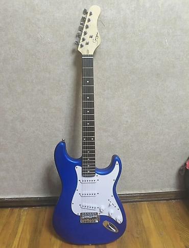 - Korpus: Strat üslublu, parlaq mavi rəng, ağ pikqard