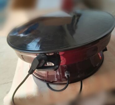 Elektrik sac sobası / elektrik manqal-soba - Dəyirmi formalı, qapaqlı elektrik sobası - Korpus: emallı metal, qırmızı-bordo rəng - Yuxarıdan çıxan elektrik kabeli ilə şəbəkəyə qoşulur (220V) - İst...