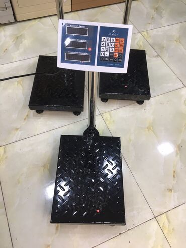 Elektron platforma tərəzi - Güclü metal platforma: təxminən 40x50 sm ölçülü, sürüşməyə davamlı naxışlı səth - Dayaqlı dirək və üst paneldə LED/LCD göstərici - İdarəetmə paneli: ədəd düymələri, tar...