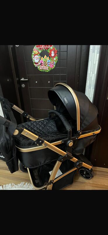 Uşaq arabası – 150 AZN - Rəng: qara, qızılı/bronz çərçivə və tutacaq detalları - Tip: körpə üçün beşik tipli (carrycot) modul - Çərçivə: möhkəm alüminium konstruksiya, amortizatorlu arxa yaylar - ...