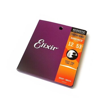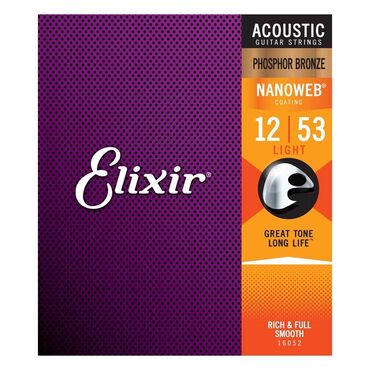 Elixir Acoustic Guitar Strings – Phosphor Bronze, NANOWEB Coating, Light 12–53 (model 16052) - Tip: Akustik gitara simləri - Material: Phosphor Bronze - Örtük: NANOWEB – hamar hiss, parlaq və zəng...