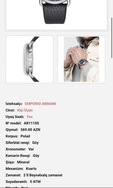 EndirimsizEmporio Armani kişi saatı - 570 azn-ə alınıb