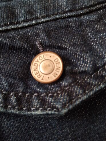 Cins şalvar, 42 razmer. 1 dəfə geyilib, belinin arxa hissəsinə balaca