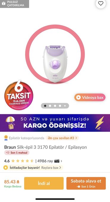 Epilyator, Braun, Bədən üçün, İşlənmiş, Pulsuz çatdırılma