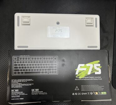 - Qutu üzərində qeyd: “75% Hot‑swappable Gasket‑mounted Mechanical Keyboard with Rotary Knob”
