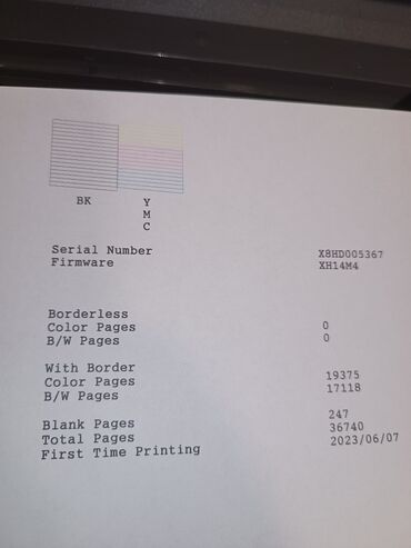 Çap statistikasından görünənlər (printerin öz test vərəqindən):