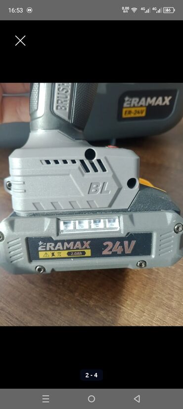 ERAMAX ER-24V simsiz zərbəli matkap/şurup qaytaran dəsti yeni ec istifadə olunmayıb idyal vezededir bu - Gərginlik: 24V - Mühərrik: Brushless (fırçasız) - Tork: Max 18–50 N·m - Sürətlər: 0–500 rpm...