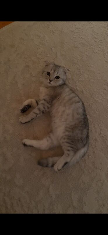 3 dənə erkey balalar idi. İkisi satıldı. Bir bu şirin qalıb. Rəngli gözdü. Öz pişiyimin balasıdır. 25 sentyabr doğulub. Tam sağlam oynayan pişikdir. Ata silver şınşıla ana skotiş foldur. Təmiz ci...