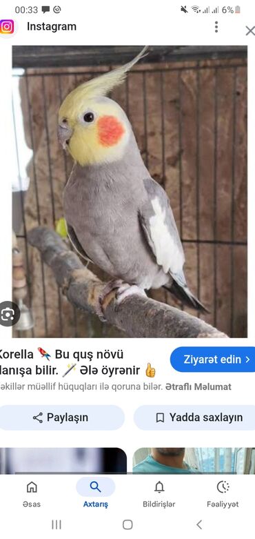Tutuquşu Korella satılır Salam adı chipsidi öz qusumdu balacaliqdan özüm böyüdüb öyrətmişəm təmiz erkekdi 3 mahnı bilir Aşkım ve diğer sözleri bilir Öpüşlər atır😍 qəti dislemir El qusudur sakit ç...