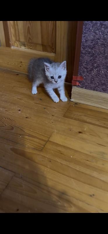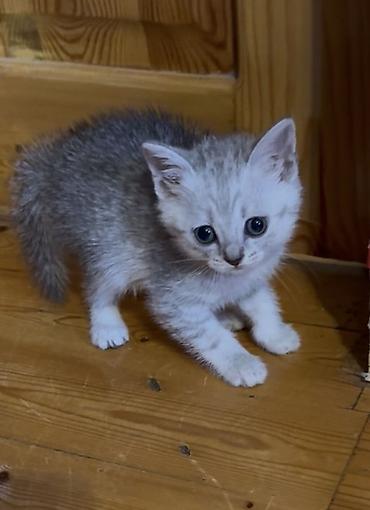 Boz tüklü balaca pişik balası - Cinsi: boz rəngli, qısa və sıx tüklü, yumru başlı, iri ifadəli gözlər - Xüsusiyyətlər: mehriban, sakit xasiyyətli, qucağı sevən; ev şəraitinə tez uyğunlaşır - Yaş q...