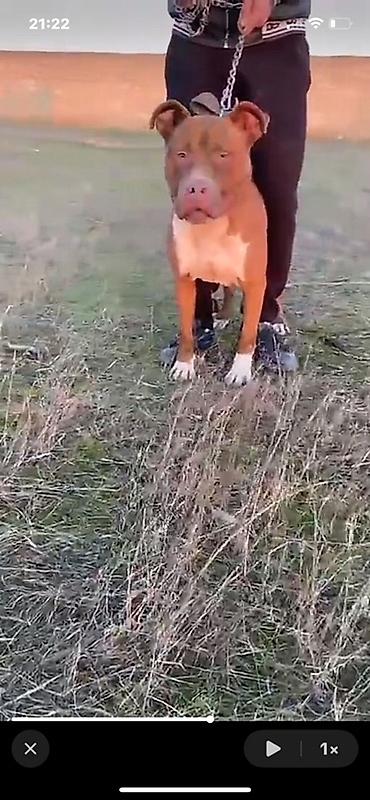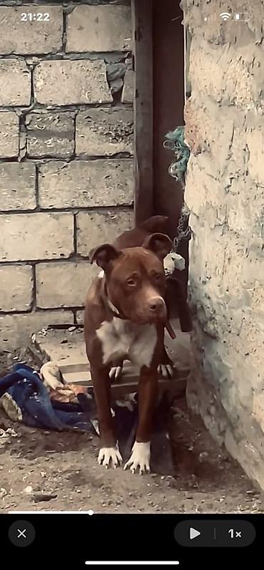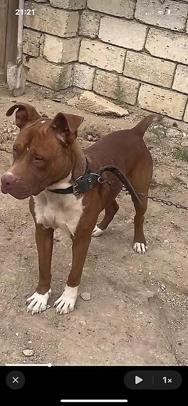 Erkəy pitbul 1 yas 5 aylıq ətraflı məlumat üçün whatsapa yazın..İt – böyük ölçülü, güclü bədən quruluşlu, qəhvəyi rəngdə, sinəsi, pəncələri və burnunda ağ ləkələri olan erkək. Qısa, parlaq tük örtüyü, geniş sinə, əzələli ayaqlar və qısa quyruq. Başı iri, qulaqları yarı dik, gözləri badamvari. Güclü metal zəncirə uyğun qalın boyunluqla gəzdirməyə öyrəşib.