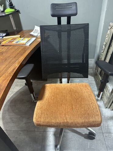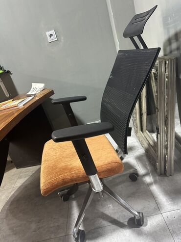 - Müasir dizayn: qara mesh arxa, qara qol və baş dayağı, metal detallar və narıncı oturacaqla ofis və iş otaqları üçün uyğun.