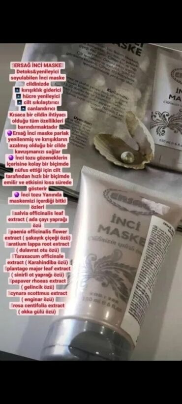 - İnci maskası: nazik qat sürtüb quruduqdan sonra soyaraq çıxarın.