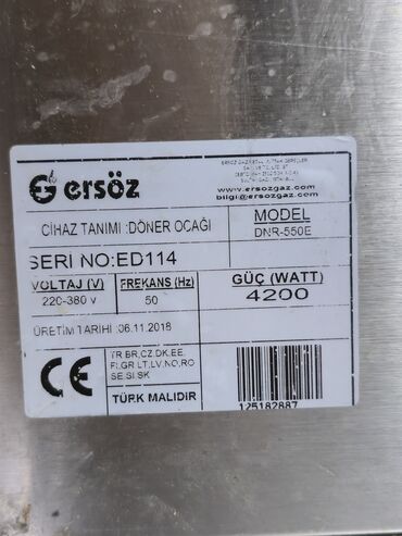 Hasanoğlu firmasına məxsus 3 gözlü, motorlu dönər aparatı – 2 ədəd. - Hər biri: 400 AZN - 3 faza qoşulma - Cəmi 1 ay istifadə olunub - Tam ideal vəziyyətdə - Ünvan: Bakı, Şirin x. Xüsusiyyətlər: -...
