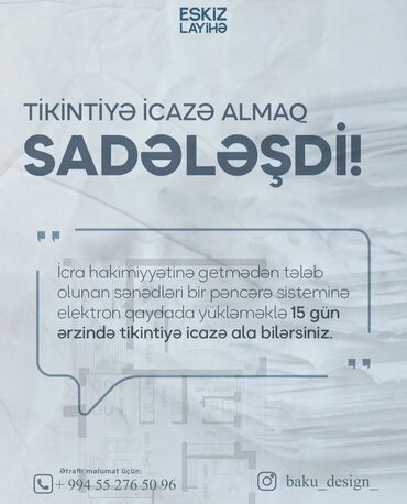 ☑️çıxarış almaq üçün mövcud tikililərin layihələndirilməsi-eski̇z-layi̇həni̇n lisenziyali və peçatlı formada hazırlanması və sizə təhvil verilməsi ☑️tikinti sərəncamı almaq üçün yeni tikiləcək tik...