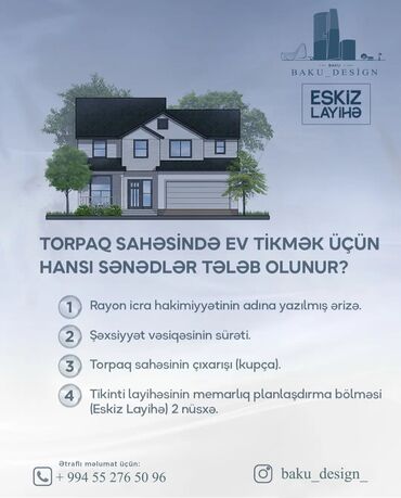 Eskiz layihə mövcud evlərə çixarış (kupça) almaq və yeni tikiləcək fərdi yaşayış evləri (Məlumatlandırıcı icraatı) üçün ilkin sənət Hazırlanması mövcuddur.