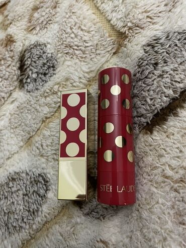 - Limitli kolleksiya qablaşdırması: qırmızı üzərində qızılı xallı dizayn, brend loqotipi.