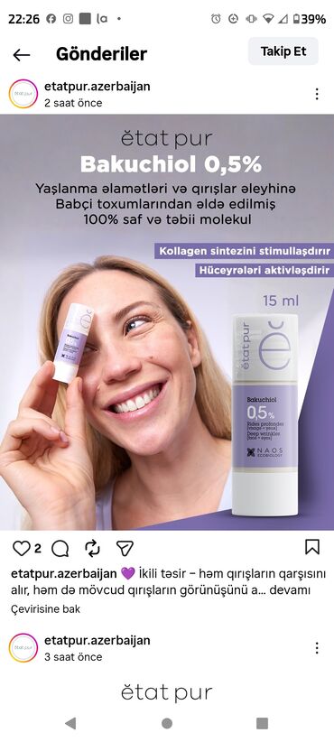 Hər məhsul NAOS ekobiologiya yanaşmasına əsaslanan dermatoloji formul ilə hazırlanıb. Dəriyə uyğun komple keçid üçün ideal üçlü: təmizləmə sonrası tonik, hədəfli göz kremi və kollegen dəstəkləyən bakuçiol serumu.
