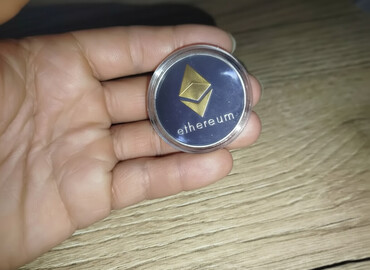 Ethereum təqlidi. [ETH], efir, fiziki formada Efirum Logolu kriptovalyut suvenir sikkəsi. Paslanmaz. Diametri 40 mm × 2.5mm qalınlığı hamısı qabların içindədirlər.
