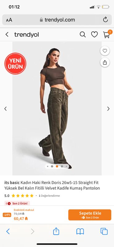 Etiketli. Vilvet şalvar. Xaki reng. 38 yazılıb ama 36 razmere gedir. Materialı çox qeşengdir. Baha alınıb. Razmer uyğun gelmediyi üçün satılır.