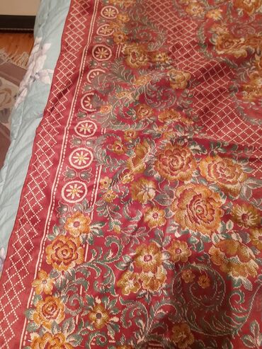 Xalça – klassik Şərq üslubu, qırmızı fonlu, mərkəzdə medalyon kompozisiyası - Ölçü: təxmini böyük otaq ölçülü (foto üzrə geniş format) - Rəng palitrası: kərpic-qırmızı əsas, krem, qara, tünd yaşıl ...