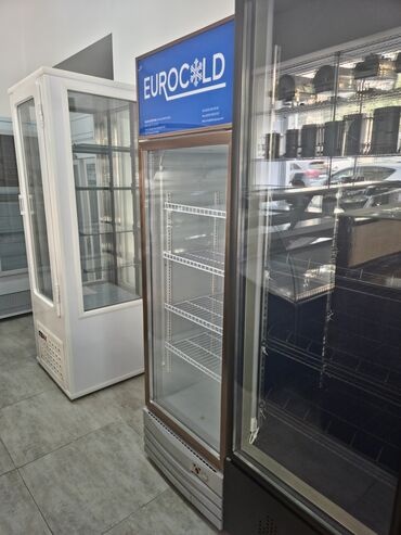 EUROCOLD vitrin soyuducu - Brend: EUROCOLD - Tip: Şüşə qapılı ticarət/vitrin soyuducu (vertikal) - Korpus: ağ gövdə, ön hissədə şüşə qapı; üstündə işıqlı reklam paneli (EUROCOLD) - Raflar: 4 ədəd ...
