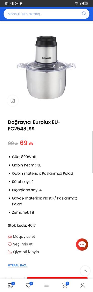 EuroluxEurolux doğrayıcı az istifadə edilib 8 ci ay alınıb yeni dəst olanlardan hədiyyə edilib deyə buna ehtiyac qalmır 69a alınıb 35e satılır