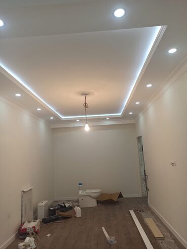 - Alçıpan tavan və ara bölmələr: gizli LED işıqlandırma, spot sistemləri, karniz-gizlətmə və fiqurlu tavanlar
