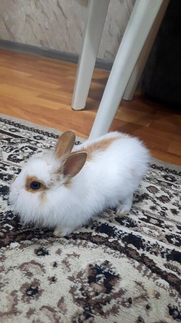 Sevimli dekorativ dovşan - Növ: dekorativ ev dovşanı (uzun, yumşaq tüklü) - Rəng: ağ fon üzərində açıq qəhvəyi ləkələr - Qulaqlar: orta ölçülü, dik - Xasiyyət: sakit və mehriban, ev şəraitinə uyğu...