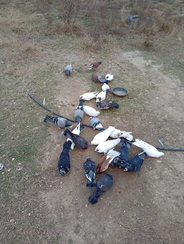 Qarışıq nal-qarın və rəngdə ev göyərçinləri dəsti