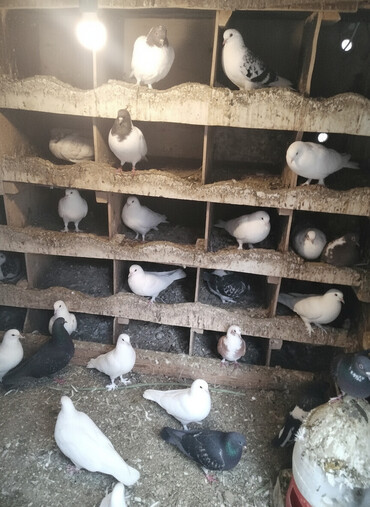 Məhsul: Ev göyərçinləri sürüsü Təsvir: - Müxtəlif rəng və naxışlarda ev göyərçinləri: ağ, qara, boz, qəhvəyi və alacalı fərdlər - Sürüdə həm tam ağ “toy” tipli, həm də klassik boz-qara “poçt”/uçuş...