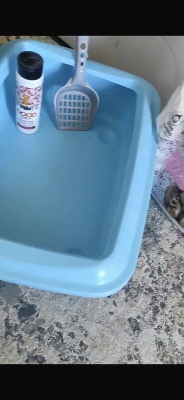 - Pişik tualeti: mavi rəngli plastik vannaya bənzər qab, hamar səth, kənarları yüksəkdir.