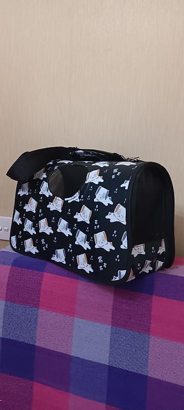- Daşıma çantası: Yüngül və möhkəm konstruksiya, üst hissədə əl tutacağı və çiyin kəməri. Yanlarda və ön hissədə nəfəsalan tor pəncərələr, dairəvi əlavə hava dəliyi. Fermuarlı açılış. Parlaq naxışlı parça (yatan balaca it fiqurları). Kiçik və orta ölçülü pişik/it balaları üçün uyğun.