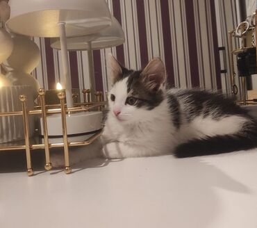 Ev pişiyidir. Quma çıxır. Qum qabı qumu alana hədiyyə verilir. Erkəkdir. Oyunsevərdir. 6 aylıqdır. Oturmağıda bacarır. Qiymətdə razılığa gəlmək olar.