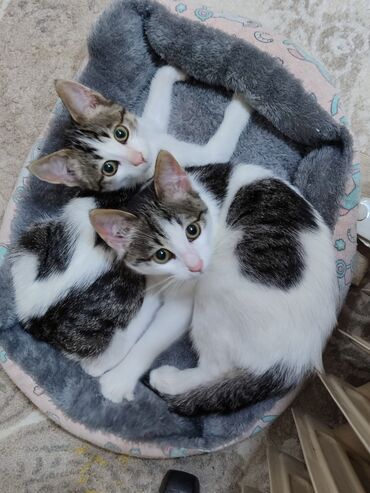 Yarıcins şıltaq və mehriban qız pişik balaları. Qonşumuz tərəfindən həyatlarının ilk həftəsində çölə atılmışdırlar 😢 Anaları - Şotland. Qum tərbiyəsi var. 4-5 aylıq, birə və qurd dərmanı verilib....