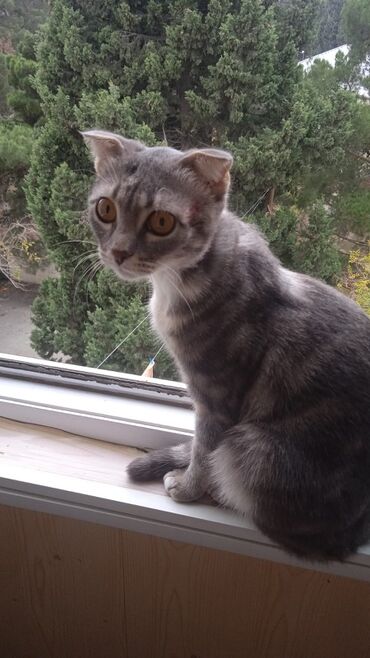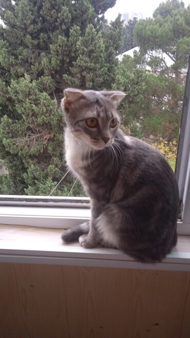 Ünvandan götürməBoz-bəndli rəng keçidləri və qızılı gözləri ilə cazibədar ev pişiyi. Qulaqları yığcam, zərif quruluşlu, uzun quyruqlu. Sakit və mehriban xasiyyətli, diqqəti sevir, pəncərədə oturub ətrafa baxmağı xoşlayır. Təmizliyə alışıqdır, qum qabından istifadə edir. Ev şəraitinə uyğun, uşaqlarla və digər ev heyvanları ilə rahat ünsiyyət qura bilir. Saxlaya bilen varsa whatsappdan mesaj yazsin olke xaricine gedecem hemde baxa bilmirem 9ayliqdi shinsila sotland qarisigdi