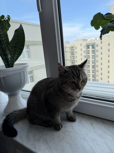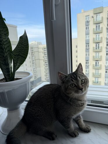 Ev pişiyi – boz-qara zolaqlı, qısa tüklü, klassik tabby rəngində. Xüsusiyyətlər: - Sakit və mehriban xasiyyət - Şüşə kənarlarında və ev daxilində rahat yaşayır - Zərif, simmetrik zolaqlar və açıq ...