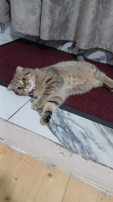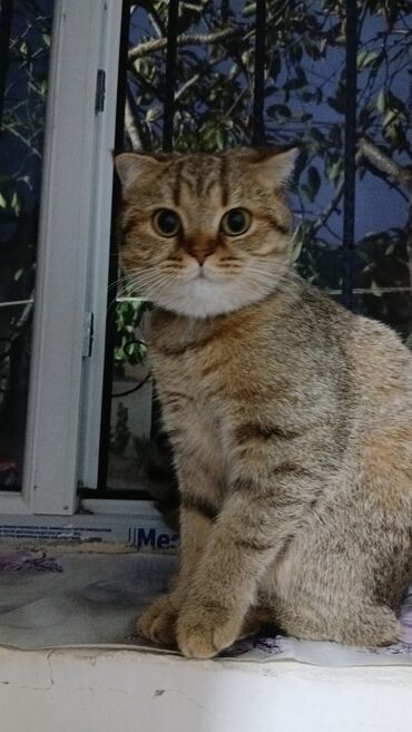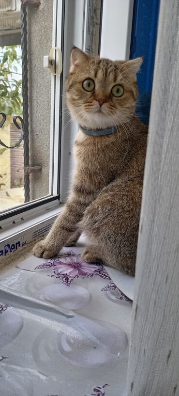 Ev pişiyi – qısa tüklü, qızılı-qəhvəyi (tabby) rəngdə, iri yuvarlaq gözlü. Yanaqları dolu, burnu qısa, qulaqları kiçik və yığcamdır. Bədəni kompakt və əzələli, quyruğu qalın zolaqlıdır. Boyunluq taxmağa öyrəşib.
