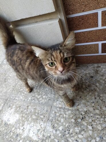 Sevimli balaca pişik balası - Rəng: qəhvəyi-boz tabby (xətdarlı) naxışlı tüklər, boğaz və ağız nahiyəsində açıq rəng - Gözlər: iri və ifadəli, parlaq - Qulaqlar: uclu, diqqətli görünüşlü - Xasiyyə...