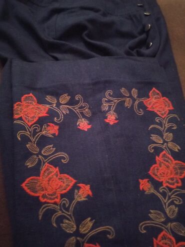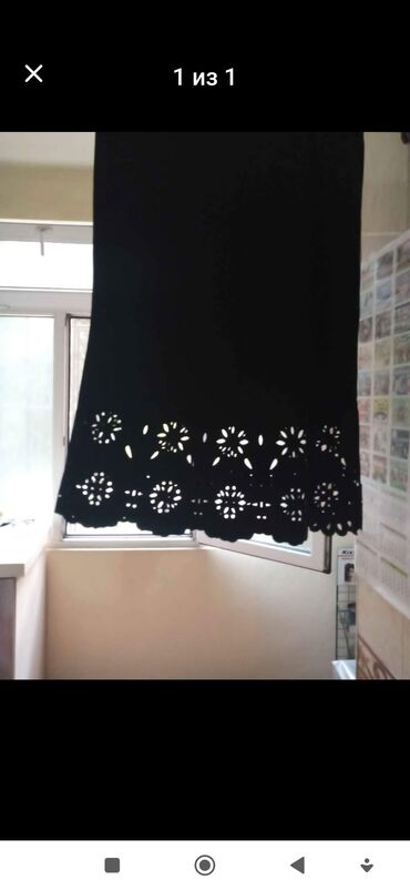 - Qara ətək: Alt kənarı deko-kəsimli güllü perforasiya bəzəyi ilə. Dizə yaxın uzunluq təəssüratı yaradır, kənarı dalğalı konturla tamamlanıb.