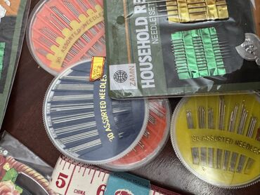 - Müxtəlif ölçülü iynələr: dairəvi qutularda “30 Assorted Needles” setləri.