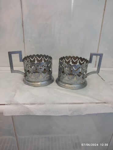 Stəkan altlığı (подстаканник) satılır. Sovet istehsalıdır, materialı aliminium, yaxşı vəziyyətdədir. Hər birinin altında sovet aid olduğu haqqında yazılar var. Miqdar: 6 ədəd. Rəngləri qızılı rəng....Giriş•Qeydiyyat
