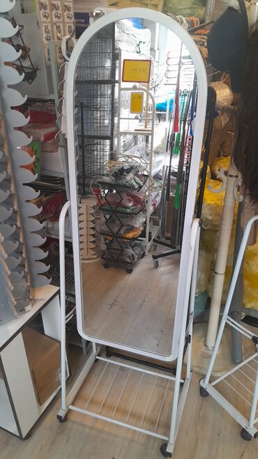 ~ Güzgü 4 təkərlidi və altda əşya qoymaq üçün rəfi var istədiyniz istiqamətdə rahatliqla döndərə bilərsiz Material PVC Kronşteyn