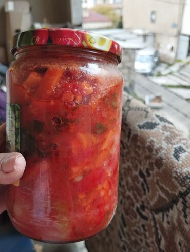 Məhsul evdə hazırlanmış tərəvəz qarışığından ibarət olub, gündəlik yeməklərə ədviyyəli domates-bibər dadı qatır.