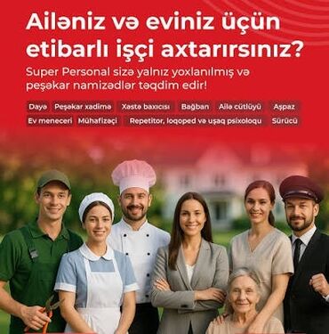 Eviniz üçün təcrübəli və güvənilir personal axtaranlar üçün. 5 il iş təcrübəsi olan milli mətbəx yeməklərinin hamısını bişirə bilən bir aşbaz xanim və bağban və s. ev işlərini görmək üçün Təcrübəli bəy. yaşları 45-50 yaş.