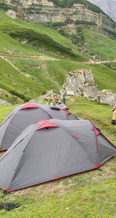 Şişmə çadır nasosla dolması (5dəq) Ölcüsü: 3×2.5 hundurliyi 2,2m. Materialı: Oksford (su keçirilməz Küləyə davamlı) 4 fəsil × 8 nəfərlık. soba yeri var ÇADIR (3×2.5×2.2) 8kv - 550azn cekisi 25kg. ...