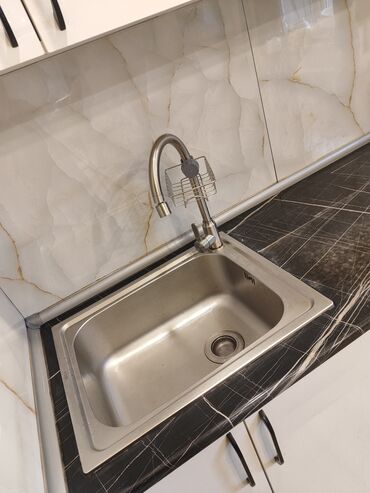 - Evye: paslanmayan poladdan birgözlü (dərin kasa), metal qarışdırıcı kran, drenaj süzgəci, kranda kiçik səbət tutacağı.