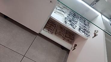 - Funksionallıq: Aksesuarlar, eynəklər, papaqlar, kosmetika, bijuteriya və bənzər xırda malların təqdimatı üçün əlverişli; vitrin altı dolablar anbarlanma üçün geniş yer yaradır.