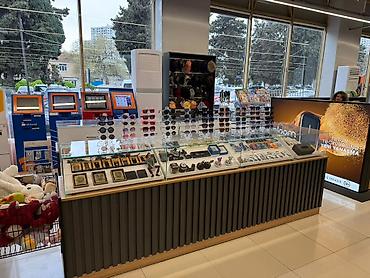 Günəş eynəkləri və maşın aksesuarlar stendi. Qiymetde endirim olunacaq,vitrin və məhsullar yenidir.